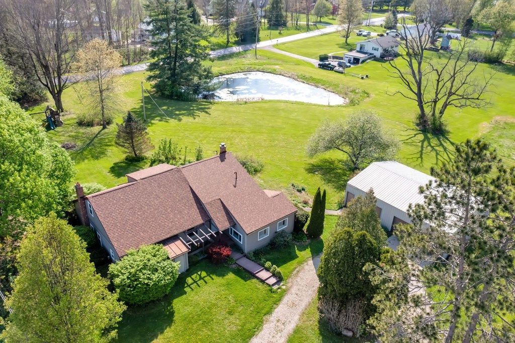 Located in the Lexington School District, this 4 bedroom, 2 bathroom home sits on 3.48 acres and offers the kind of space and setting that is hard to find. Inside, the layout is both functional and inviting with a vaulted living room, main floor laundry, and a dedicated office space. The eat in kitchen is full of character with hand hewn barn beams and a brick fireplace with insert that anchors the space and makes it feel like home. The loft area adds flexibility for additional living space, a play area, office, or a quiet place to unwind. Outside, the property opens up with a pond, private orchard, stone patio, and room to enjoy the outdoors. The 2.5 car detached garage includes a workshop, and the additional shed provides great storage. If you are looking for acreage in Lexington with space, character, and privacy, this is one worth seeing.
